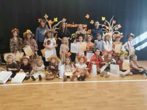 Dnia 31.10 w Zespole Szkół w Zabawie odbył się Gminny Konkurs Piosenki ,,Jesienne Nutki” . Miło nam poinformować, że uczennice z naszego przedszkola zdobyły zaszczytne miejsca: W kategorii wiekowej 3-4 latki – Zosia Puskarz zajęła II miejsce. W kategorii 5-6 latków – Hania Czosnyka wyśpiewała I miejsce i Nikola Kasprzyk II miejsce. Serdecznie Dziewczynkom Gratulujemy!!!!